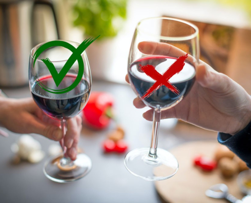 5) Пить вино из СТЕКЛЯННЫХ бокалов для красного вина: снизу широкое донышко, к верху небольшое заужение. Лучше взять большой бокал, чем маленький: 500 млл — идеально. Чем меньше в бокале вина и чем больше воздуха, тем больше напиток окисляется, что положительно влияет на его вкус. Вино должно подышать. Кроме того, ваш нос поместиться в бокал, чтобы его нюхать. Мозг формирует целостный образ исходя из сигналов всех органов чувств.